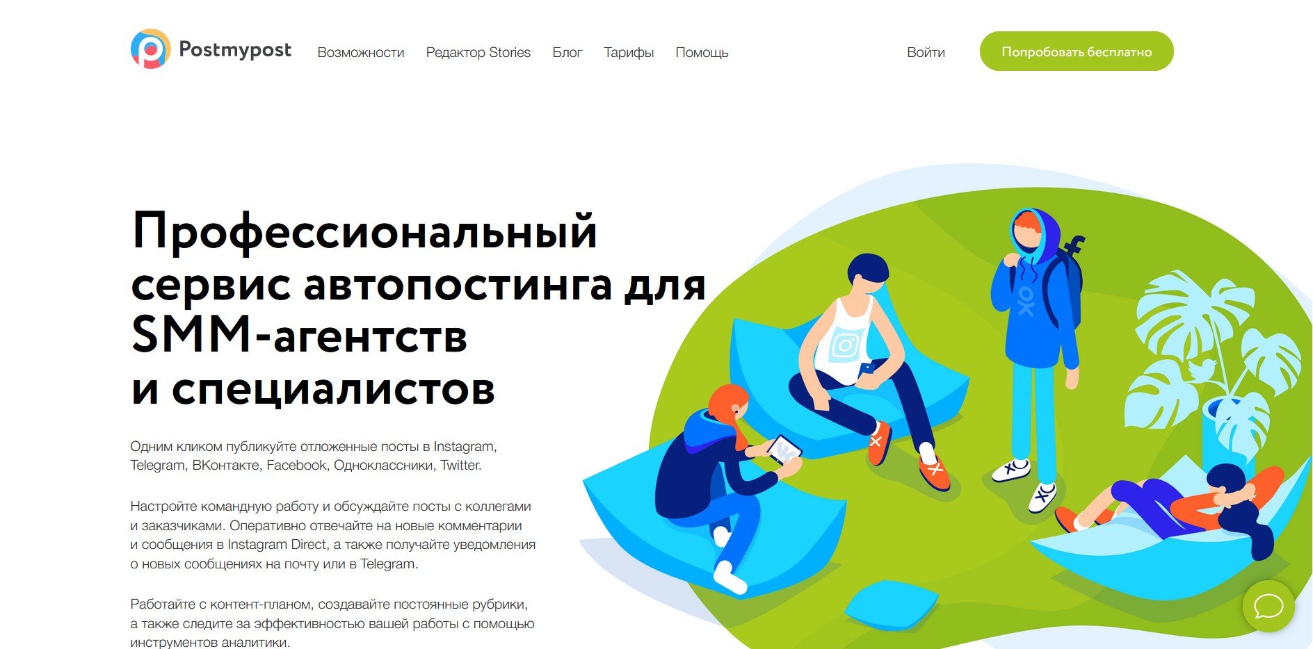 Postmypost – маркетинговый сервис, предлагающий автопостинг в социальных сетях.