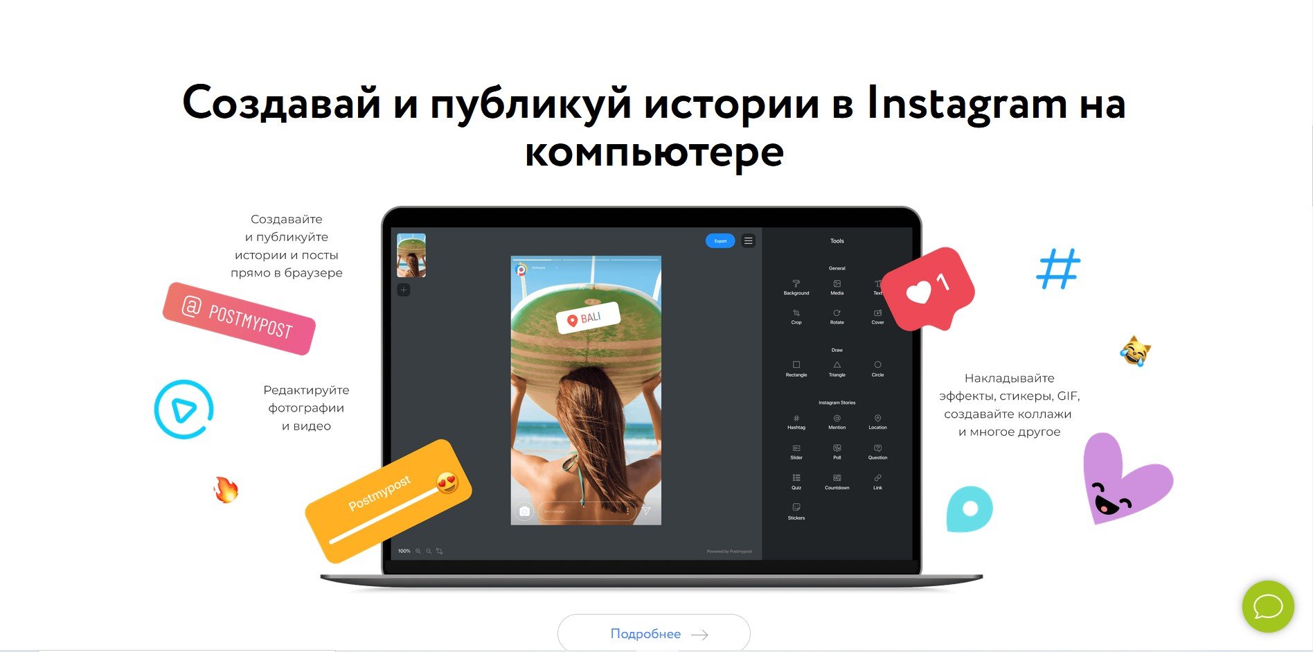 - Создание сториз для Instagram и публикация с компьютера.
