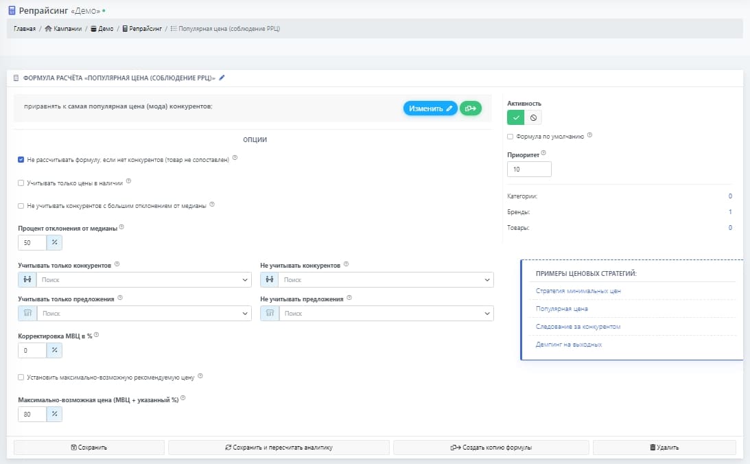 - Создавать отдельные правила ценообразования для категорий, брендов, отдельных товаров.