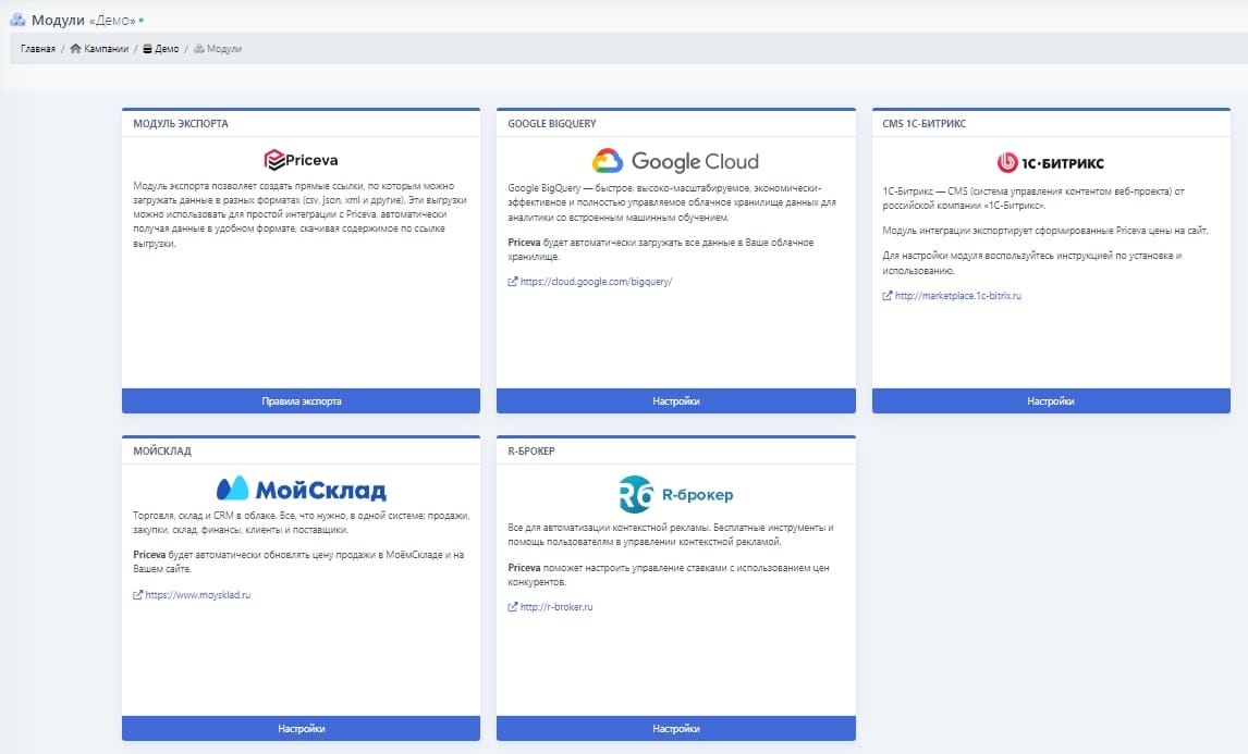 - настраивать автоматизированную передачу данных посредством API-интеграции с любой CRM, ERP-платформой или настроить выгрузку данных сразу на сайт.