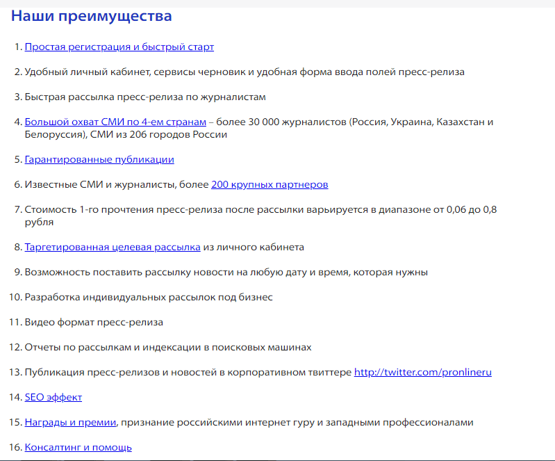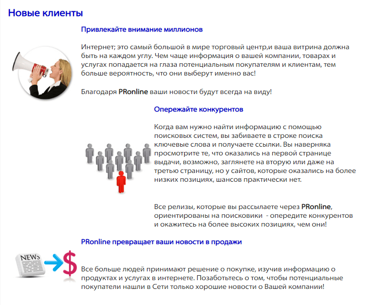 - SEO эффект, опубликованная новость или пресс-релиз будут занимать первые места в поисковой выдаче.