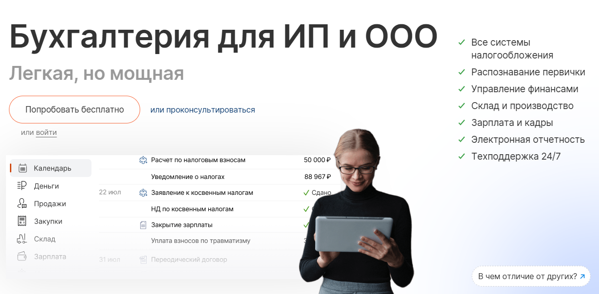 ИП: С Saby Bu можно вести учет самостоятельно или вместе с бухгалтером, легко расширить функционал при росте бизнеса. Таск-менеджер, видеозвонки и мессенджер упростят рабочий процесс.