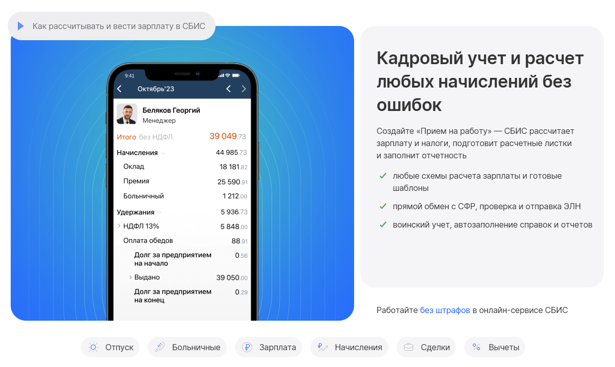 Saby Bu подскажет, как правильно подготовить кадровые документы и ничего не забыть. Рассчитает зарплату и налоги по сотрудникам, заполнит справки и отчеты. Проверит и отправит ЭЛН, проведет воинский учет.