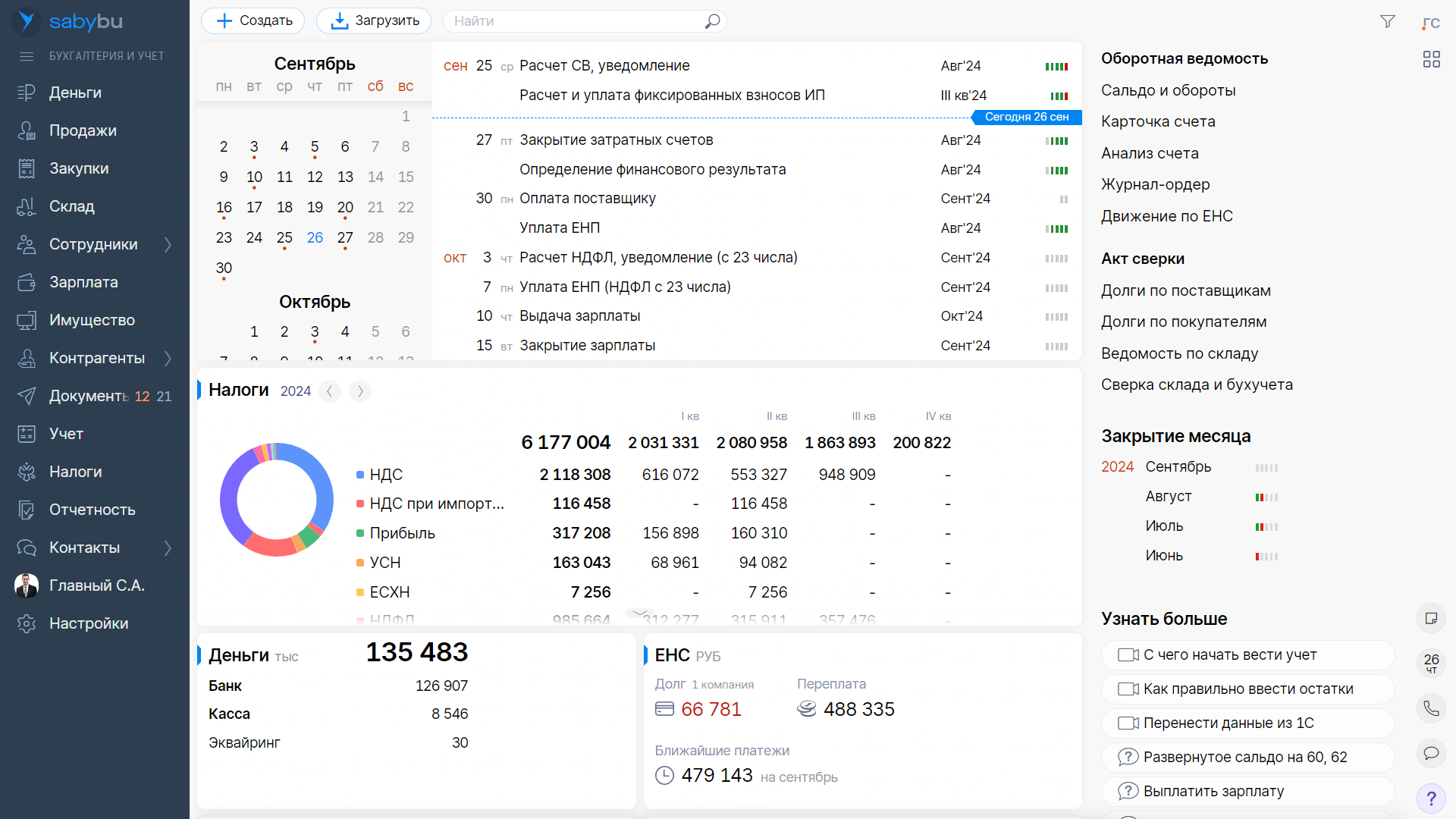 Saby Bu – онлайн-бухгалтерия, которая поможет вести бухгалтерский, управленческий, кадровый, налоговый и воинский учет. Упростит работу с документами, складом, покажет онлайн остатки и движение по ЕНС. Вы сможете считать зарплату и платить налоги из любой точки мира.