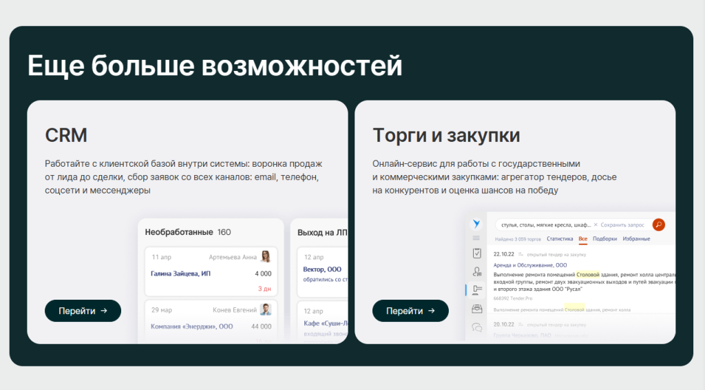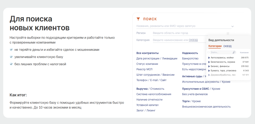 • Поиск новых клиентов или поставщиков по выбранным критериям