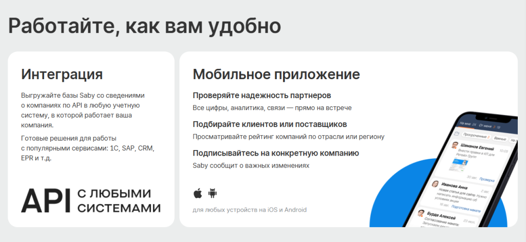 – Бизнесу, корпорациям: Saby Profile поможет оценить рынок, проверить контрагентов и определить порядок цен.