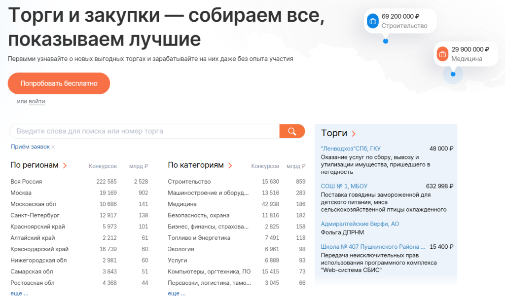 • Поставщикам: сервис поможет выбрать закупки, найти партнеров, изучить конкурентов и выстроить работу тендерного отдела.