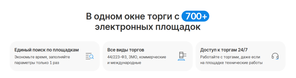 • Поиск торгов со всех активных площадок России, а также Казахстан, Беларусь и Узбекистан