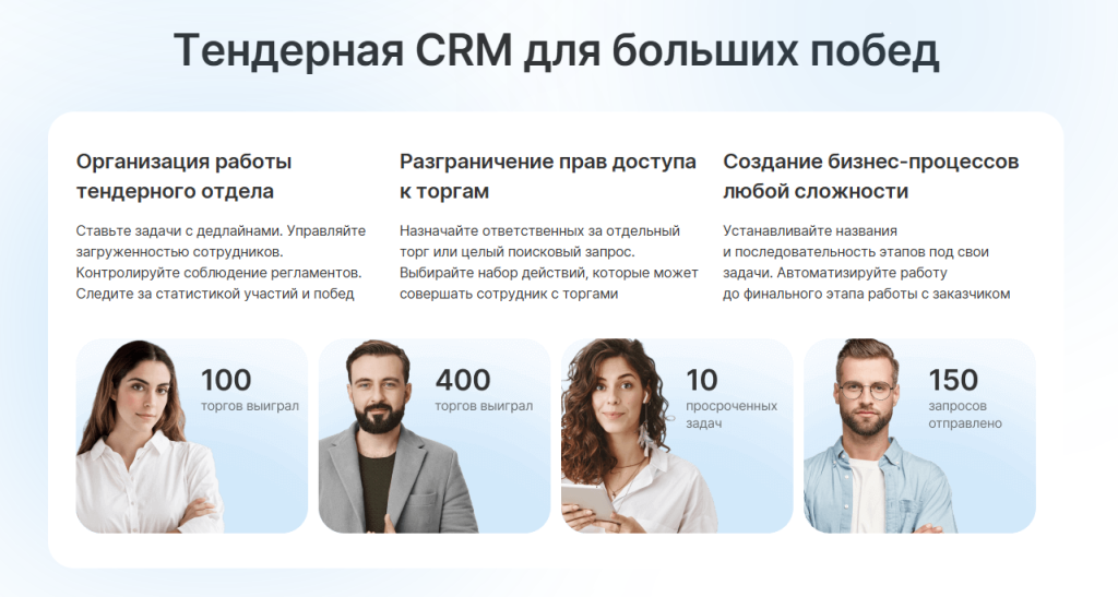 • Оценка шансов на победу • Автоматизация бизнес-процессов тендерного отдела
