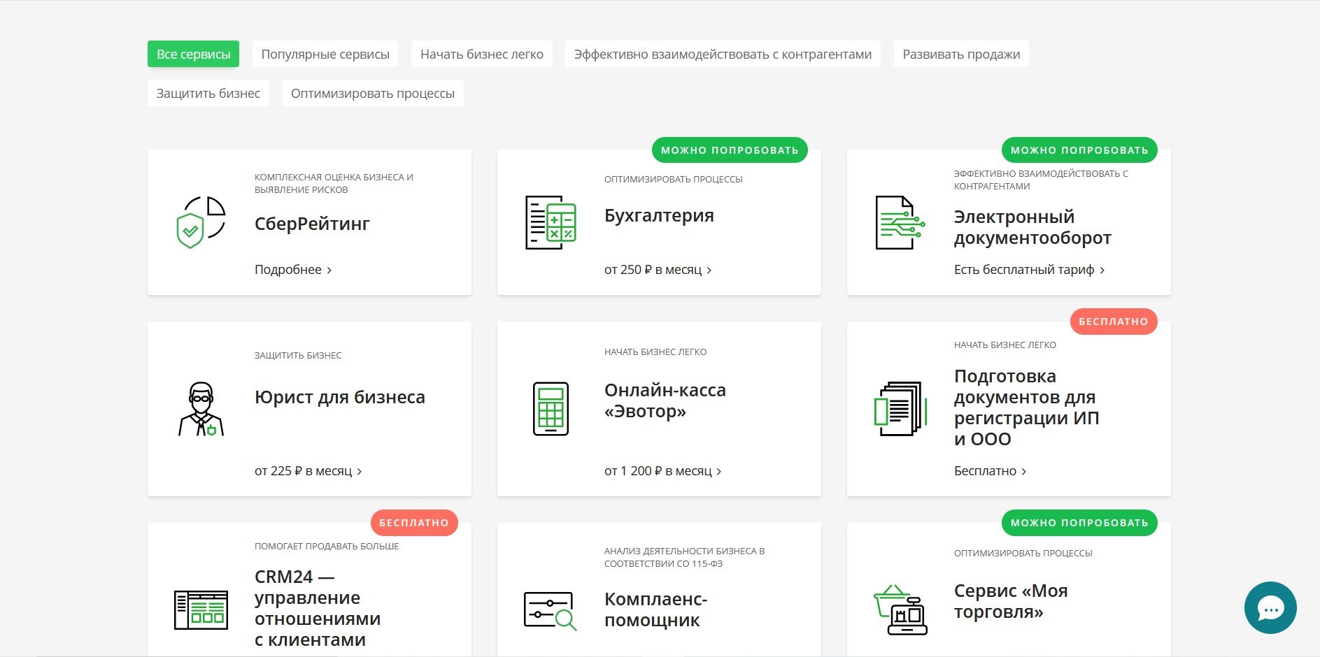СБЕРБизнес – комплексный онлайн сервис для работы ИП и ООО. Помогает решить задачи в комплексе от открытия бизнеса, ведения документооборота, бухгалтерии до продвижения. Предприниматель может подключить услуги онлайн и вести деятельность также в режиме онлайн. Для полноценного использования сервиса нужно быть клиентом СБЕРа.