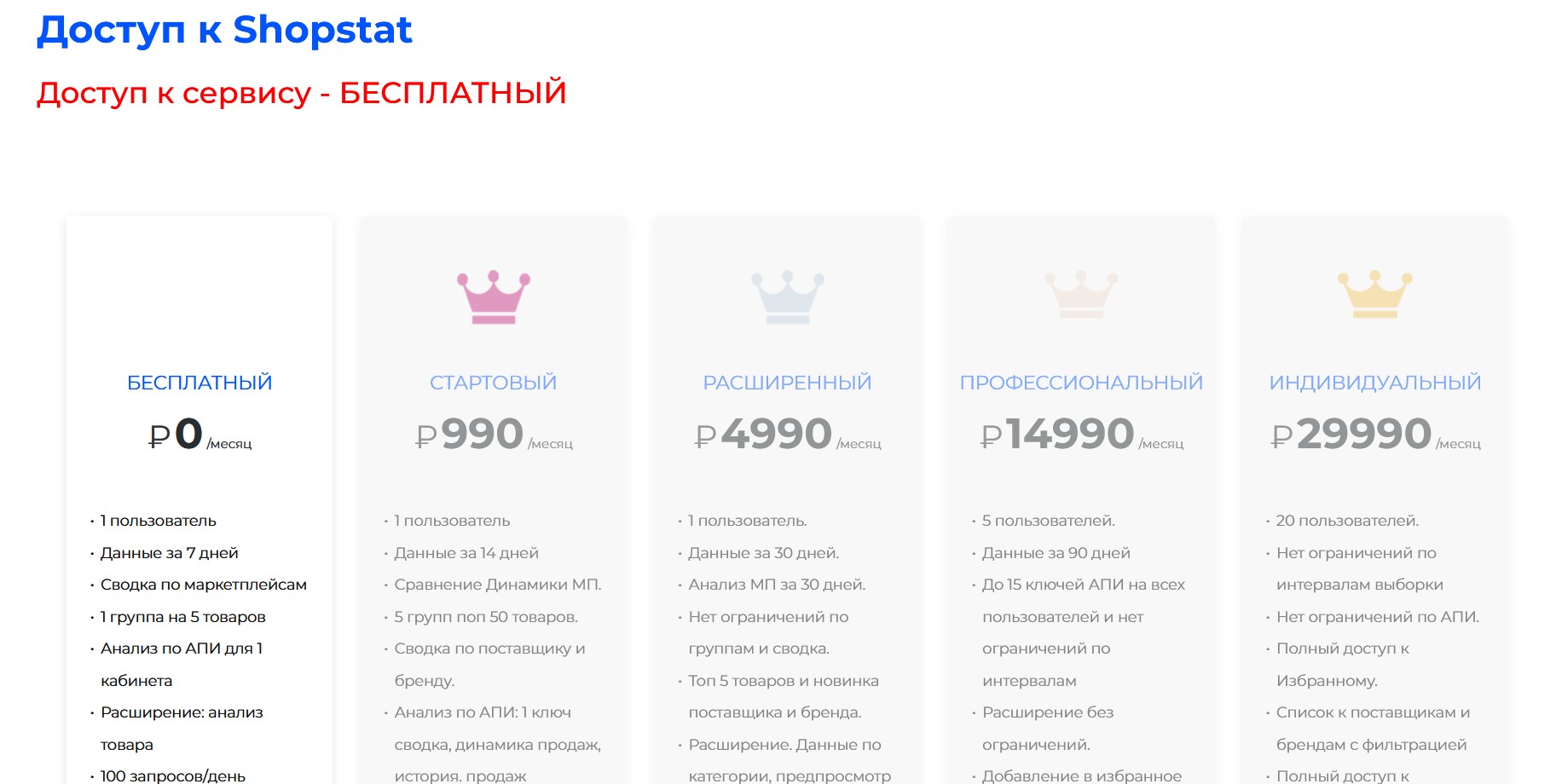 - Тариф зависит от количества товаров и пользователей.