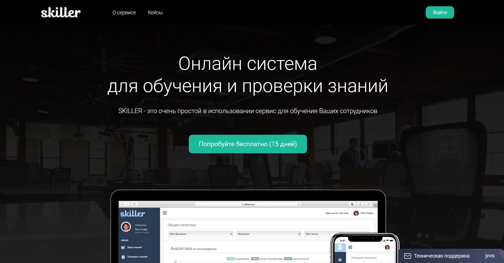 SKILLER – сервис, позволяющий настроить обучающие программы с тестированием. Позволяет создавать индивидуальные программы обучения и тестирования для каждой группы сотрудников и решать задачи текущей и входящей оценки.