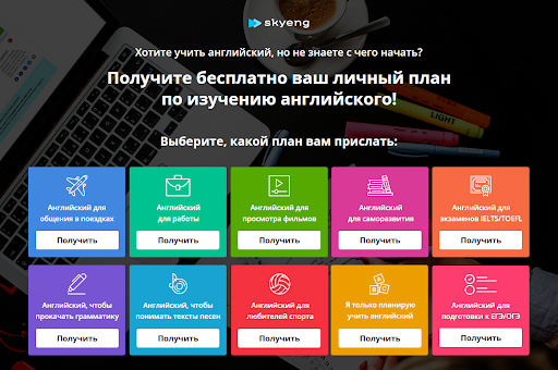 Кроме того, на сайте SkyEng можно бесплатно скачать план изучения английского, адаптированный под цели обучающегося.