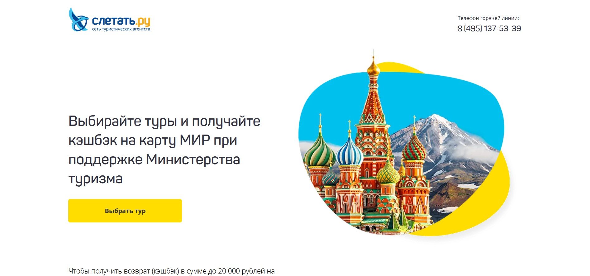 - Выбор тура по России на любое направление с кэшбэком до 20% стоимости на карту МИР по программе от Министерства туризма. На сайте есть подробная инструкция, как воспользоваться кэшбэком.