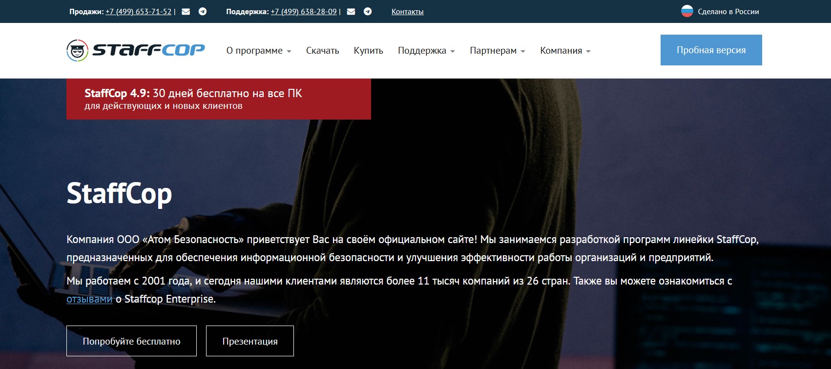 StaffCop – это программное обеспечение для управления сотрудниками, которое эффективно отслеживает все действия. Сервис может отслеживать и контролировать до 25 000 компьютеров. Он идеально подходит для предприятий со строгой политикой безопасности и тех, которые хотят повысить производительность труда своих сотрудников.