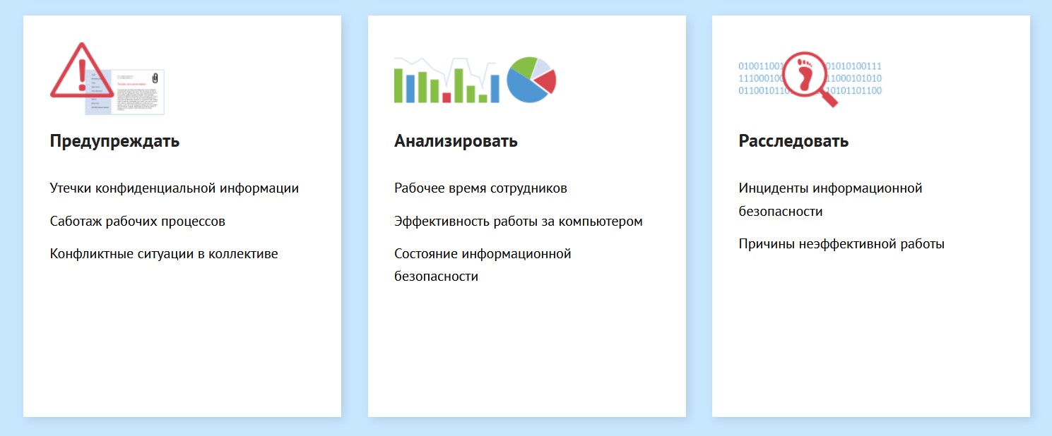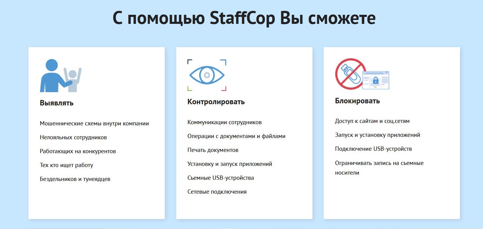 С инструментами StaffCop работодатели могут быть уверены, что все конфиденциальные данные компании защищены и работники производят только полезные действия.