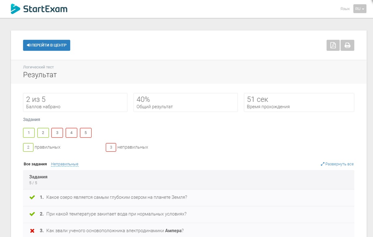 StartExam также предлагает интеллектуальную систему для планирования оценок и анализа результатов.