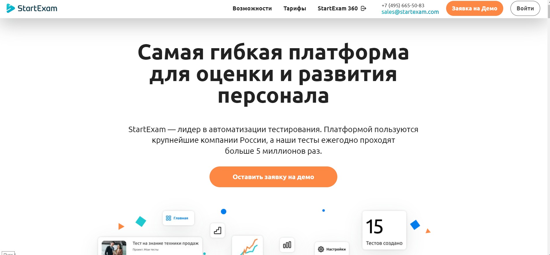 StartExam – облачная платформа, которая помогает крупным компаниям решать сложные задачи по оценке сотрудников и кандидатов.