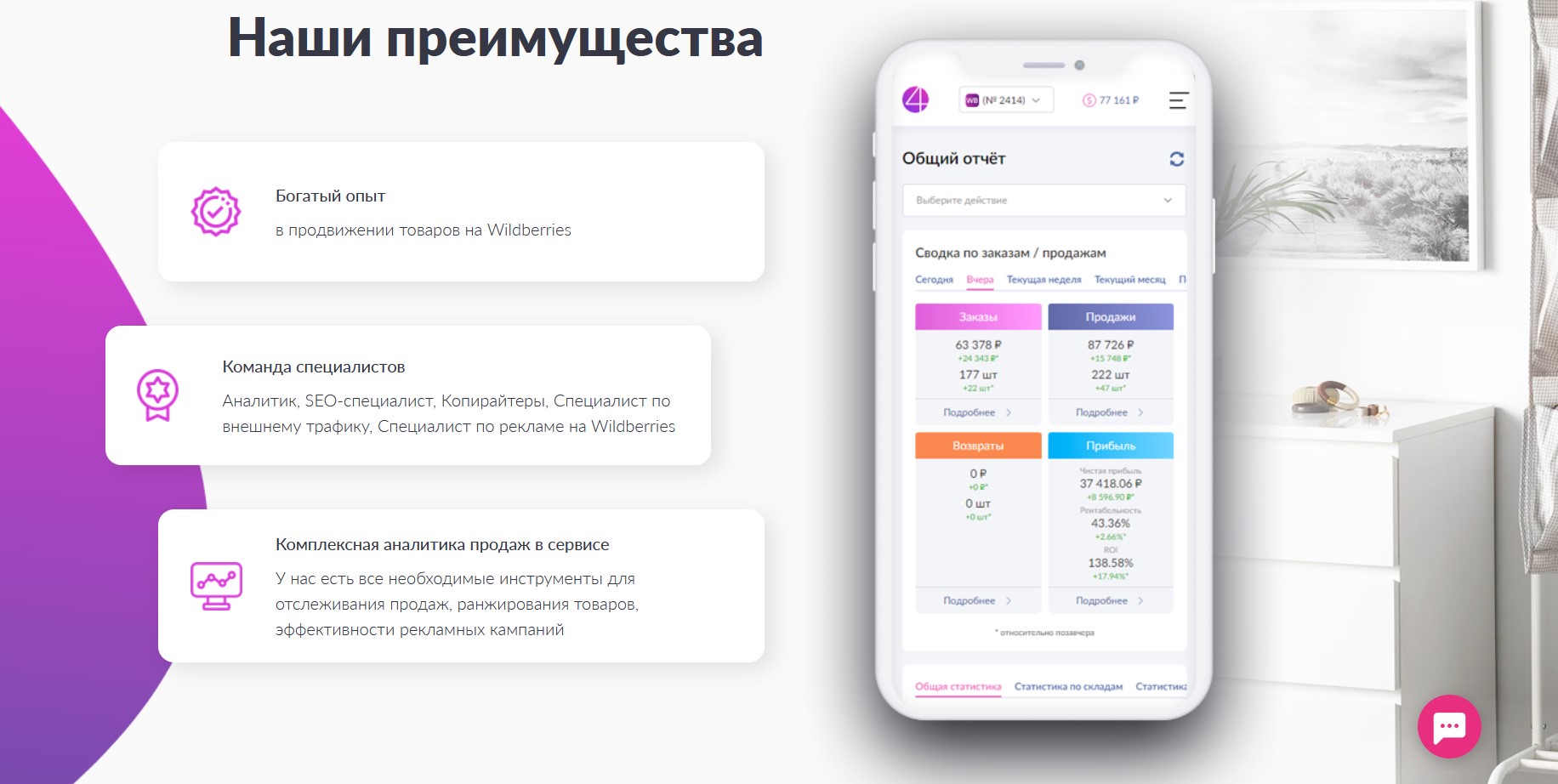 - Маркетинг для Wildberries: SEO-оптимизация товарных карточек, создание рекламных креативов, внешняя и внутренняя реклама.