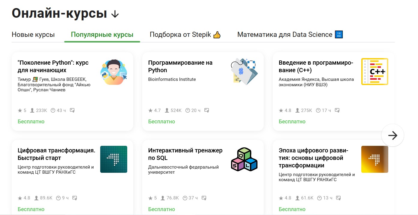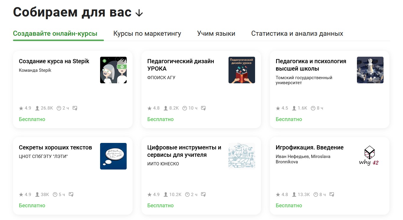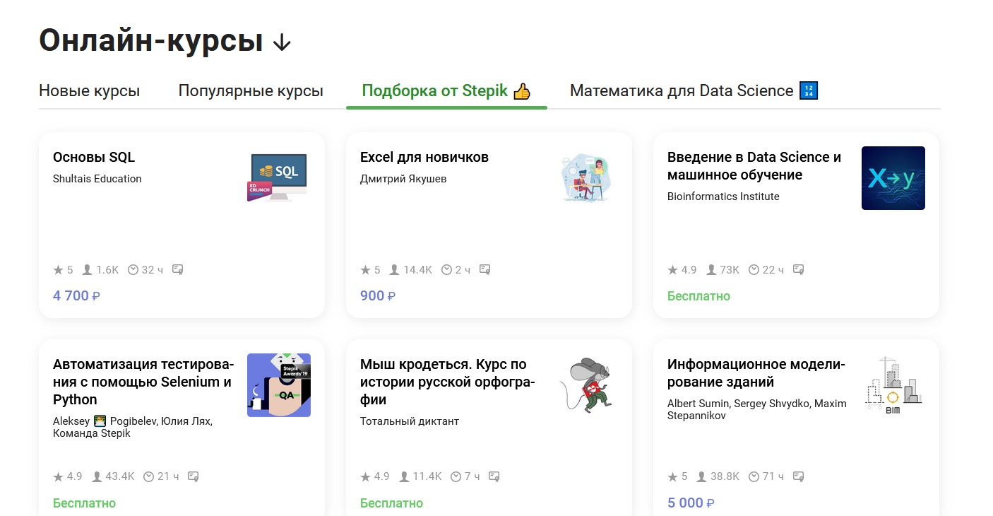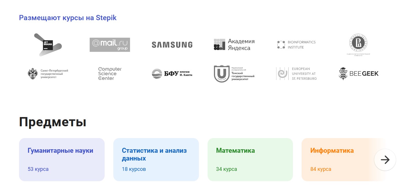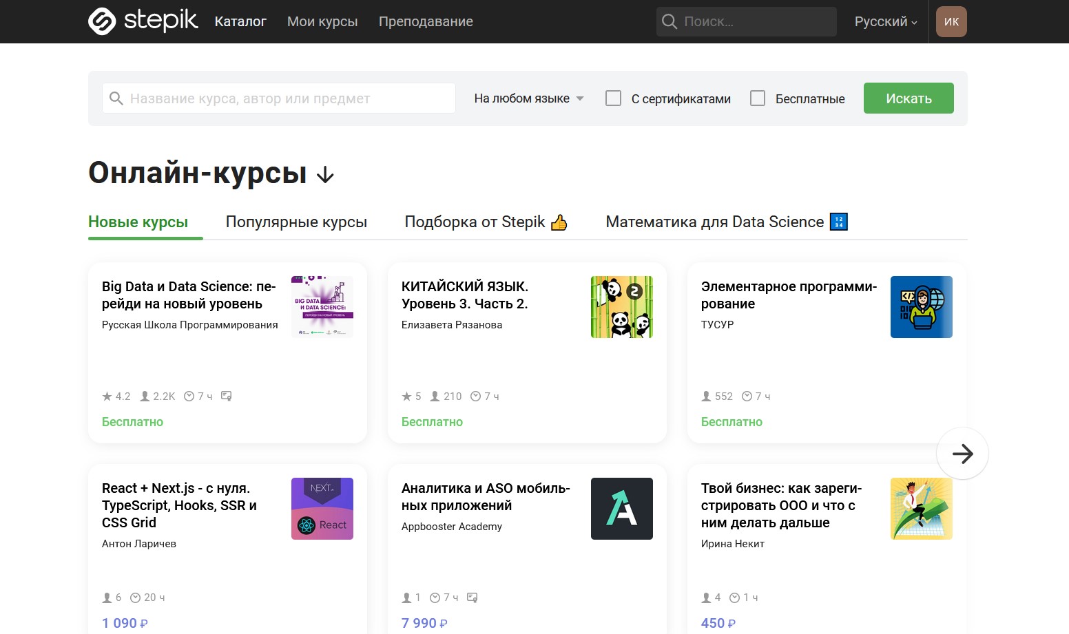 Stepik – образовательная платформа для самостоятельного изучения курсов по подготовке к ЕГЭ, по иностранному языку, цифровым специализациям. Обучаться можно бесплатно и на платной основе. Авторам предлагается создавать свои курсы, а организации могут использовать Stepik как корпоративную образовательную платформу.