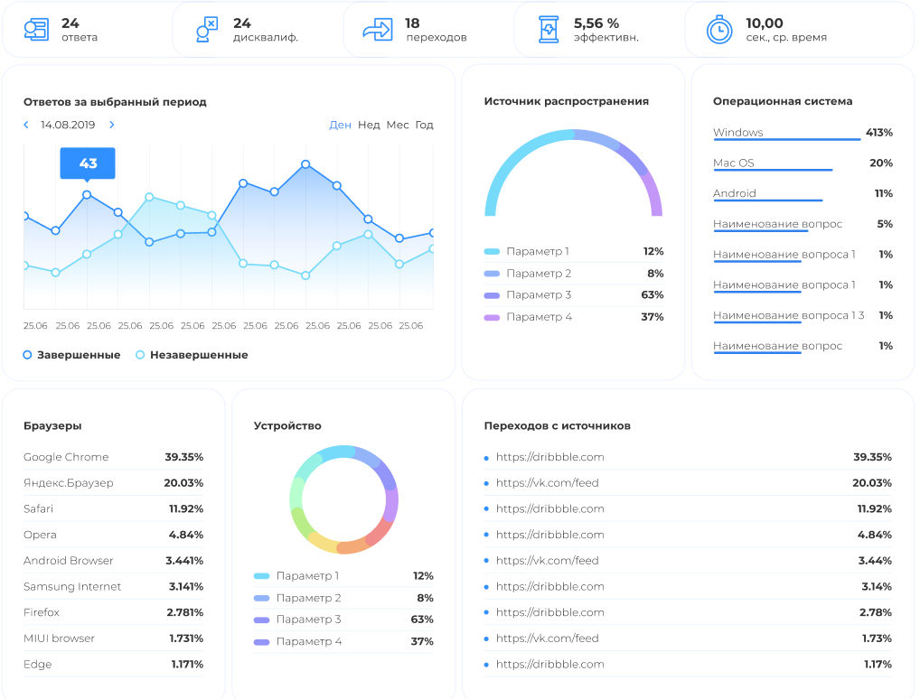 - Разнообразные функции: Обширный функционал включает настройки конфиденциальности, аналитику ответов, экспорт данных и многие другие возможности для гибкой и эффективной работы с опросами и данными.