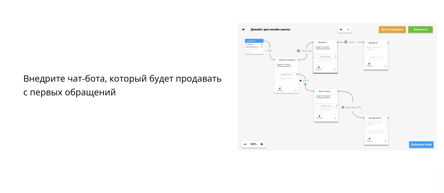 - Настройка чат – ботов для автопродаж. При подписке на новости – в подарок 12 готовых сценариев для чат – ботов.