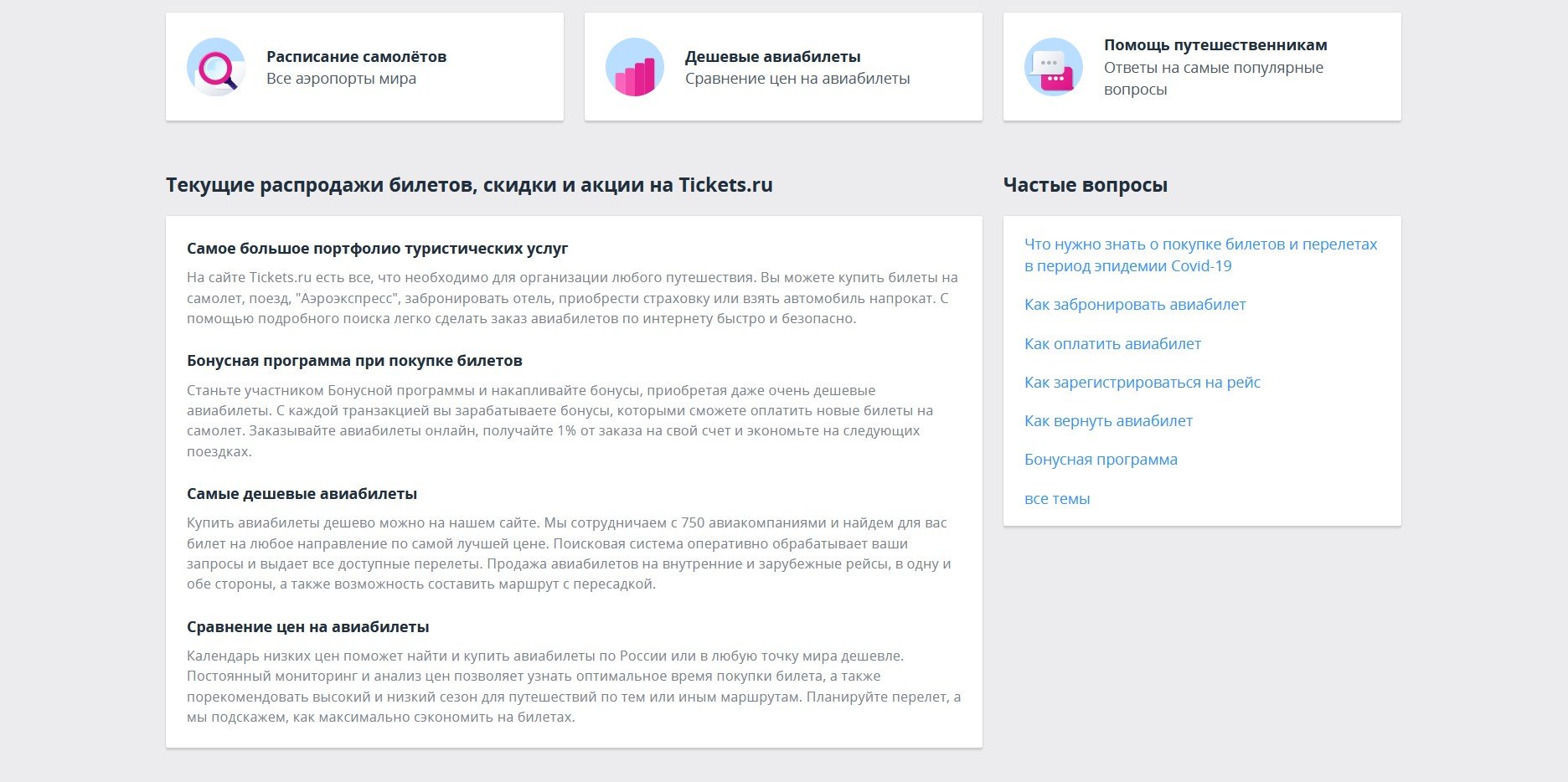 Tickets.ru помогает своим клиентам сделать лучший выбор на любом этапе путешествия, а также предлагает возможность выбирать из максимального количества поставщиков услуг и проводить прозрачное сравнение цен.