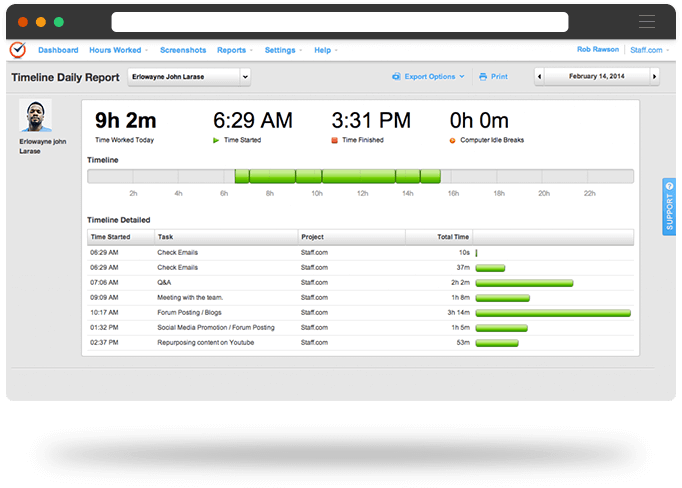 Помимо того, что руководители лучше понимают, как их команда использует свое время, сотрудники также могут видеть отчеты об использовании собственного времени. Благодаря возможности делать снимки экрана и отслеживать посещенные приложения и URL-адреса, вам никогда не придется задаваться вопросом, эффективно ли ваша команда использует оплачиваемое вами время.