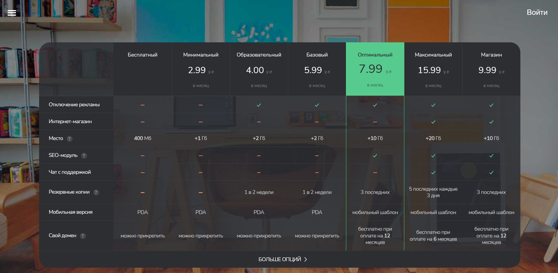 uCoz предлагает более 250 шаблонов по умолчанию и поддерживает полную настройку дизайна. Он доступен более чем на 16 языках. Доступные тарифы и бесплатные возможности для начинающих.