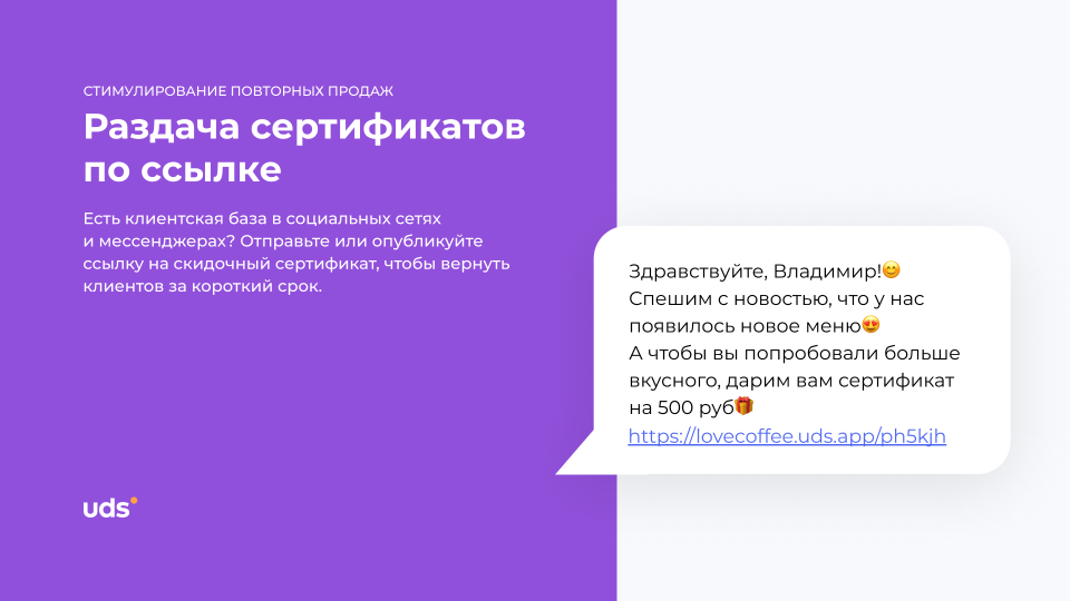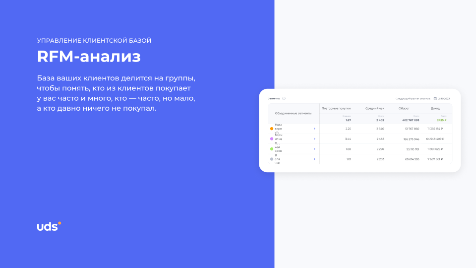 Решение использовать uds оказалось эффективным: можно разделят аудиторию, запускать персональные акции и отслеживать результаты в цифрах. За первые три месяца возвратность клиентов выросла заметно