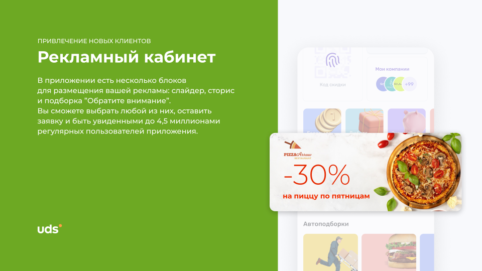 Узнал впервые о UDS из приложения Альфы. Были все магазины рядом со мной. Потом понял, что надо добавить в бизнес. Пока все нравится, но хотелось бы больше возможностей для возврата покупателей. UDSу процветания!