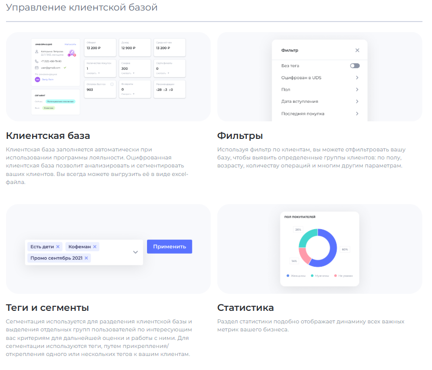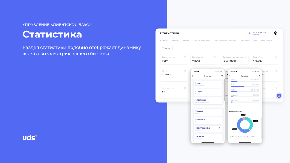 Используем UDS уже несколько месяцев в сети наших точек. Очень удобно, что система объединяет лояльность и аналитику в одном приложении сразу видна активность клиентов и легко делать рассылки. За это время увеличился процент продаж, да и средний чек вырос