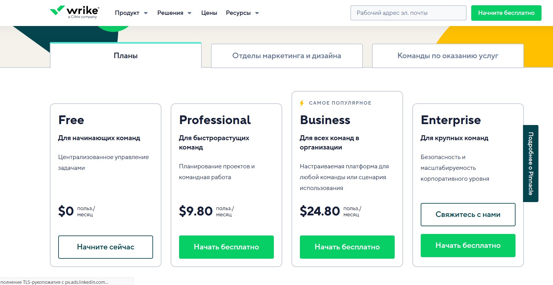 - Отдельные решения для управления проектами, маркетинговых команд, услуг, разработки продуктов.