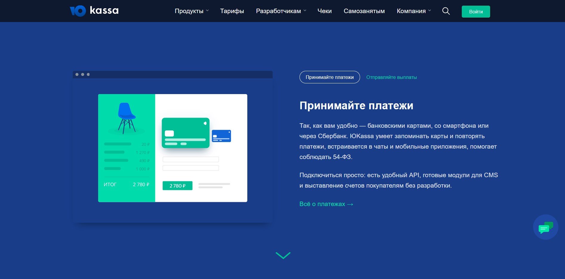 ЮKassa – платежный сервис для бизнеса и самозанятых. Бизнес или самозанятый гражданин может подключить сервис для платежей через интернет или оффлайн. Есть услуга расчетного счета для ООО с бесплатным тарифом. ЮKassa предлагает аренду онлайн-кассы через облачный сервис и онлайн создание ИП или ООО. Все операции доступны в мобильном приложении и на сайте.