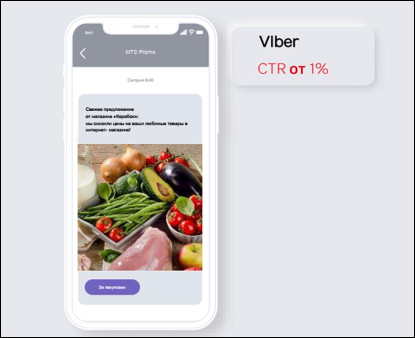 - Viber – рассылки. Мессенджер есть у 40% аудитории. Сообщения с текстом. картинками и кнопками.
