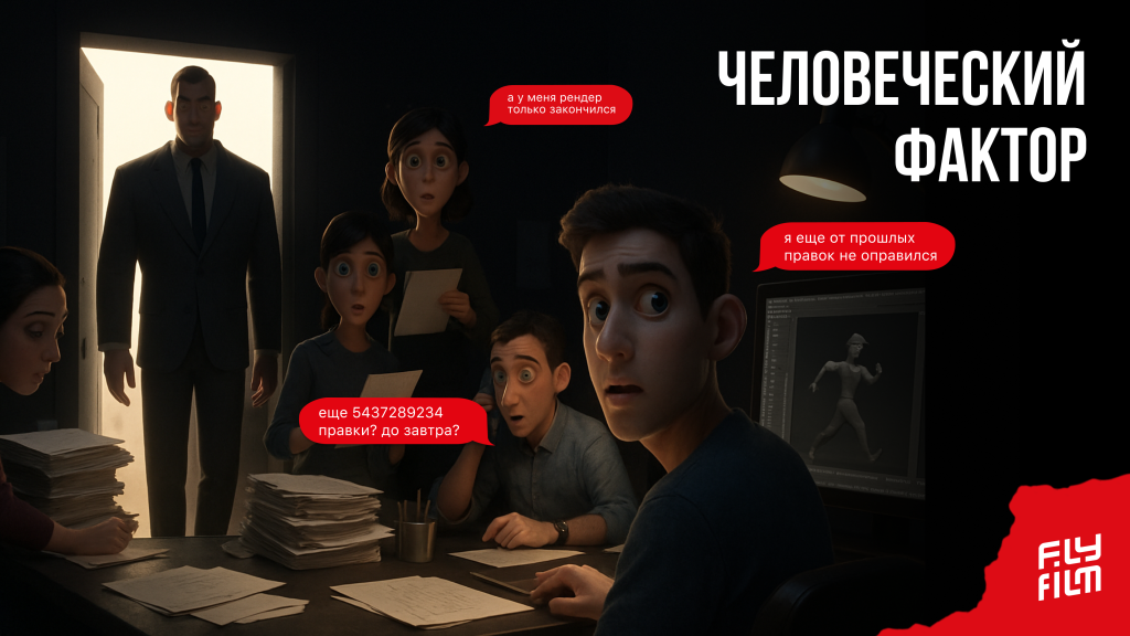 На самом деле этот пункт больше про соблюдение определенной последовательности выполнения этапов работы. Перед тем как начать проект, агентство всегда создает тайминг проекта, в котором и FLYFILM и клиент видит сколько дней запланировано на тот или иной этап работы. К сожалению, бывают такие случаи, когда на начальных этапах агентство получает согласование клиента, двигается дальше, углубляется в реализацию проекта, как вдруг внезапно в коммуникацию включается новый сотрудник, который откатывает весь производственный цикл к самому началу. Такие ситуации предусмотреть заранее не возможно, поэтому в таких случаях агентство пересчитывает стоимость проекта заново, включив не одну разработку концепций, а уже две. Так же, бывает и другая ситуация, когда во время реализации проекта меняются сроки сдачи. Это тоже влечет за собой дополнительные расходы на усиление команды.