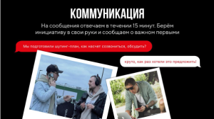 В нашей команде FLYFILM есть два закона — работать на опережение и правило 15-ти минут. Мы стараемся не давать клиенту поводов для волнений, поэтому на сообщения отвечаем быстро — наш максимум — 15 минут. А ещё, мы предугадываем возможные вопросы и не ждём пока нас спросят, тегнут или позвонят. Берём инициативу в свои руки и сообщаем о важном первыми.