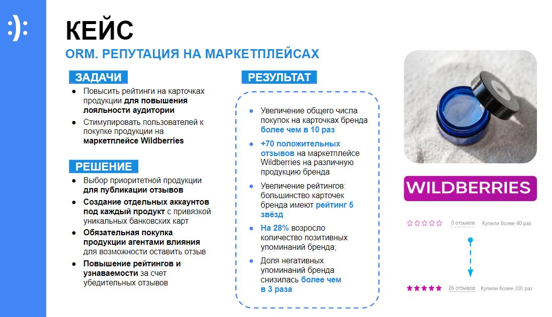 Topface media — digital-агентство с командой профессионалов в сферах ORM, SERM, Social Listening и SMM. Основное направление агентства — создание и поддержание хорошей репутации брендов в интернете. Ниже пара наших кейсов.